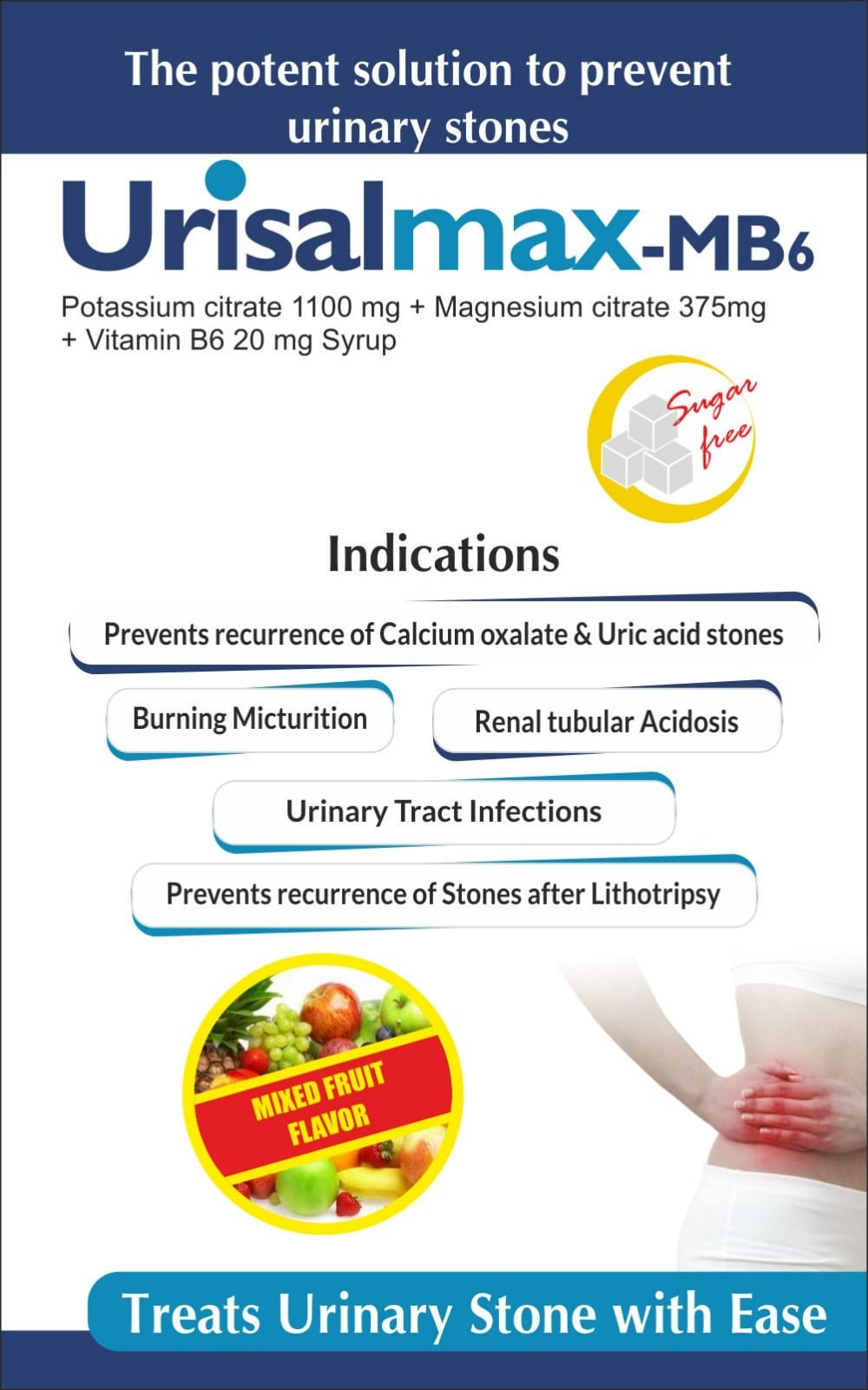 It is s a specialized urinary alkalinizer formulated with Potassium Citrate, Magnesium Citrate, and Vitamin B6. It is designed to support kidney health, prevent stone formation, and relieve urinary discomfort.