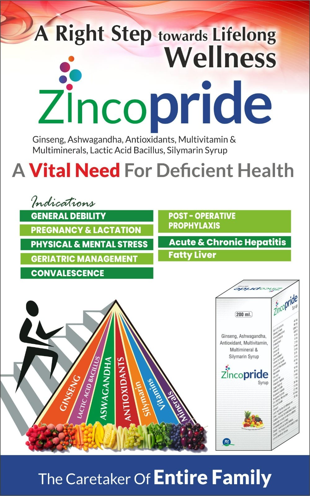 Zincopride Syrup Mix Fruit Sugar Free is a dietary supplement that harnesses the power of natural ingredients to enhance your overall well-being. It is enriched with a blend of ginseng, ashwagandha, antioxidants, multivitamins, multimineral, and silymarin. This syrup is a sugar-free solution designed to support your health goals.